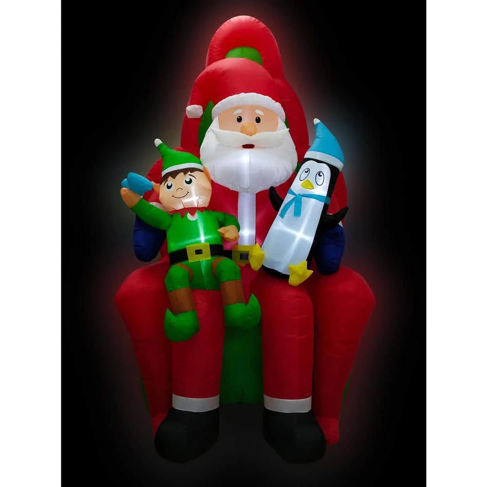 Celebrate Christmas in a big way this year with prelit jumbo inflatables by Fraser Hill Farm. Choose from our large assortment of festive airblown inflatables to create an unforgettable holiday scene. Let’s visit Santa. Brighten your lawn, garden, backyard, open porch, or deck with this cheerful Santa, Elf and Penguin sitting in his chair. Inflate the magic of your seasonal light show, party display, or family celebration with this eye-catching decoration, certain to give your friends and family a warm welcome. You won’t need to give directions. With this blow-up inflatable, your guests will easily find your home. Setup is quick and easy. Plus, everything you need is included in your package – air blower, ropes and stakes. Unpack it, plug it in, stake it down, then enjoy as the fun unfolds. For unique props to celebrate the Holidays, count on quality products from Fraser Hill Farm.