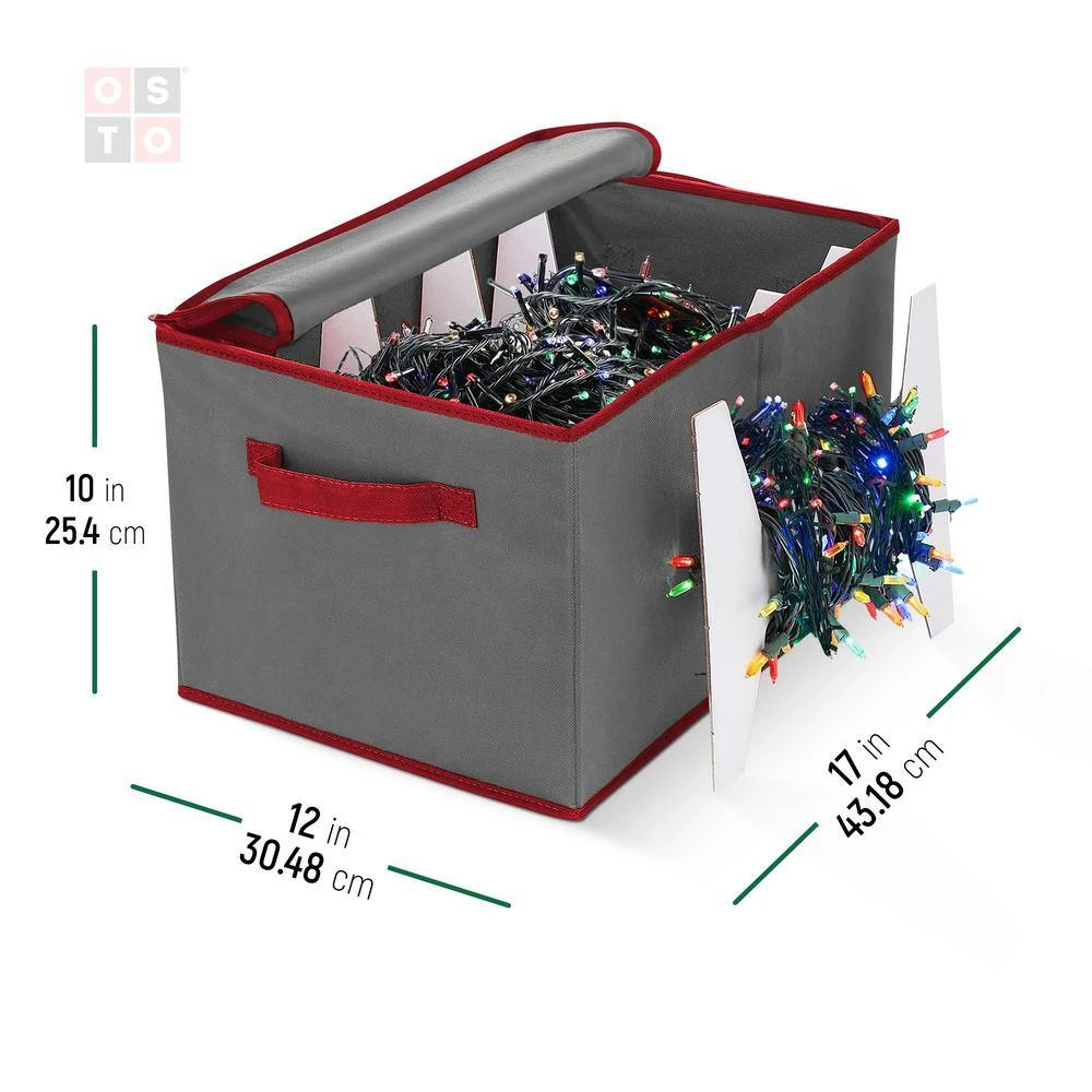 - Storage protection-box is of lightweight non-woven fabric and comes in a variety of holiday colors which will easily stand out in storage, dual zipper closes cover to shield your contents from bugs, dust, or mice from chewing on the cords