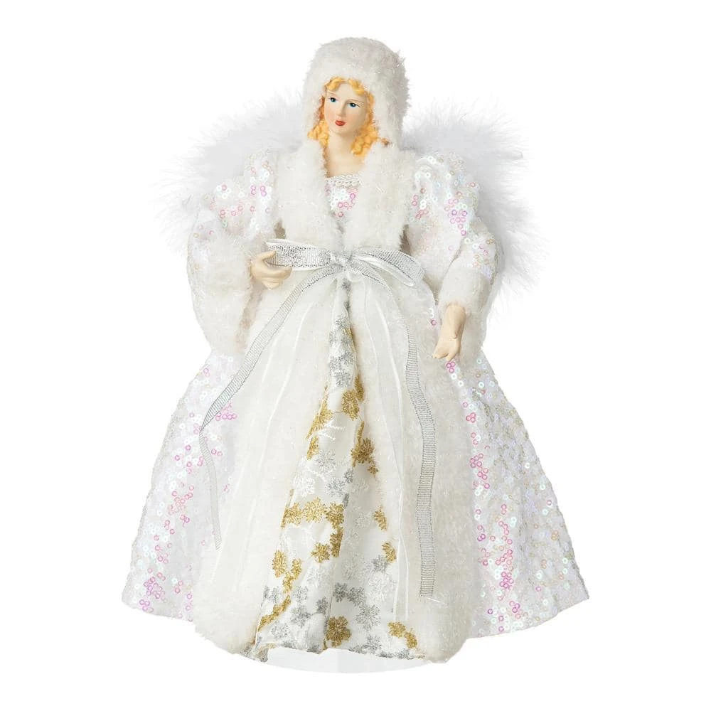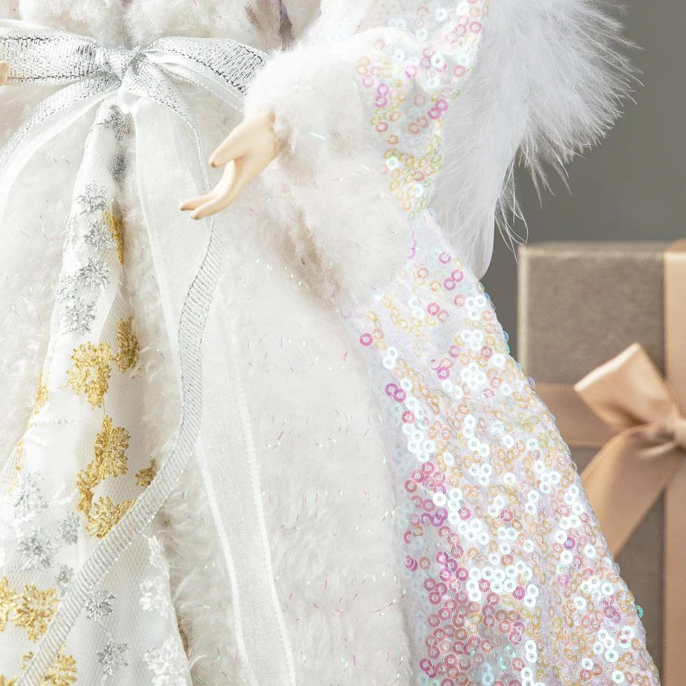 18 in. H sitting Santa with a wooden rocking chair. Santa Claus figurines you can expect for this special season, with all refined textures and fabrics. Perfect for table and entryway. Create your own Xmas corner with it. Traditional red velvet suit with faux fur decorated.