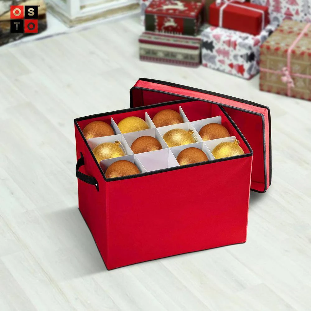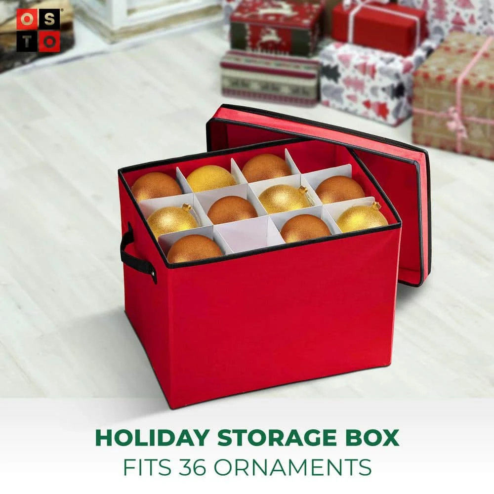 - Ornament storage-ornament storage box is cardboard-divided in 36 slots, 3 layers, for ornaments, accessories, or other holiday embellishments of 4 in. dividers are adjustable to fit even the larger ornaments