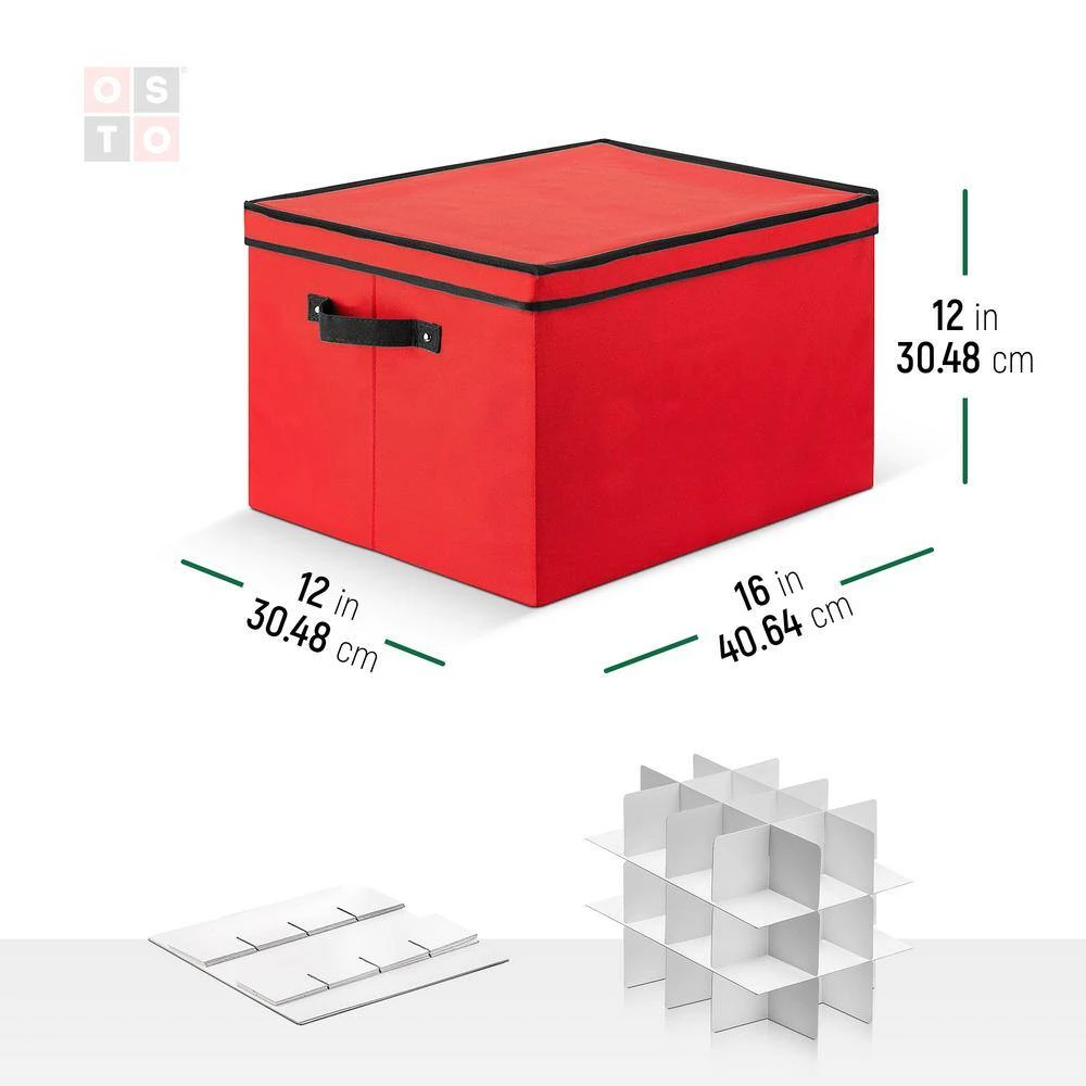 - Neat and compact-compactsized to fit a number of ornaments neatly and safely, it comes with a strong lid to shield the interior, box collapses when not in use for space saving and is stackable as well, dimensions: 12 in. x 12 in. x 16 in.