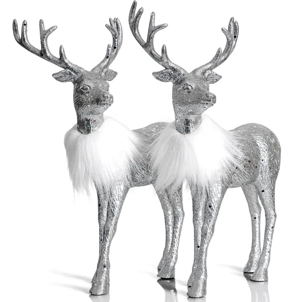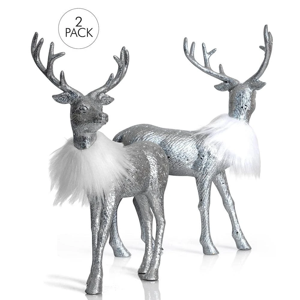 ORNATIVITY Christmas Reindeer Table Centerpiece Set is a great way to pick up your table decorations. Your table will go from nice to beautiful with just these 2 reindeer!! The reindeer are made of quality materials and the glitter is stuck on well so it will not shed much. These deer are large enough so they won’t look small on a dining room or large kitchen table, but they are small enough to still look sweet on a coffee table. These silver reindeer can contribute to any Xmas Holiday theme, regardless of if it is a candy theme, elf theme, rustic theme, winter wonderland theme, and more. Just place these reindeer on a shelf or on the mantel piece and your home will look that much more festive! These figurines are the perfect size to attract little kids. Kids love to play with these cute reindeer. The fine glitter finish will excite them even more. These reindeer can also be placed on your Holiday windowsill for the neighborhood to see. Whatever you use these reindeer for, they will be much appreciated!! And they can be stored away from 1-year to the next.