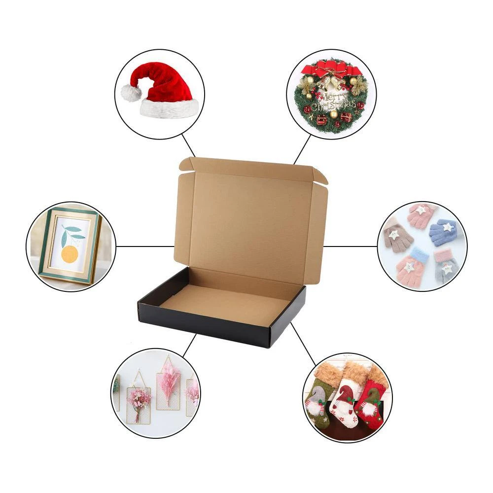 - Customizable Aesthetics: Offering a blank, neutral black surface, these shipping boxes provide a versatile canvas that can be customized with decorative elements to suit personalized gift-giving or professional branding requirements.