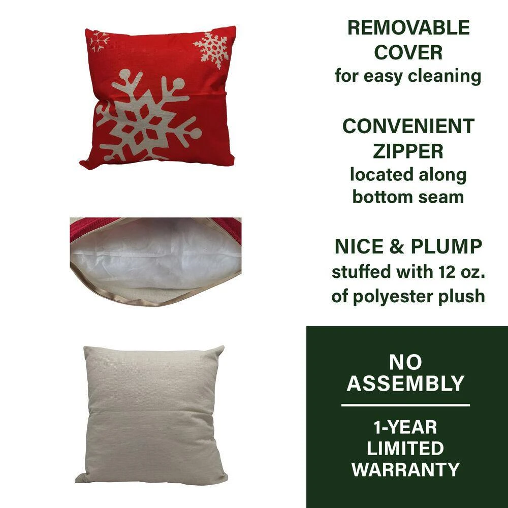 Welcome the winter holidays with a Christmas accent pillow from Fraser Hill Farm. Our snowflake throw pillow will help you spread some holiday cheer anywhere in your home – living room, bedroom, family room – wherever makes you happy. The perfect addition to your indoor Christmas display, toss it on the couch for a festive touch. This soft, comfy pillow is the perfect size to provide extra comfort to your sofa, chair, loveseat, or bed, making your wintertime decor complete. Lined and stuffed with 12 oz. of polyester plush, it features a convenient zipper located along the bottom seam to help remove the cover for cleaning. For unique ideas to celebrate the holiday season, count on quality decorations from Fraser Hill Farm.