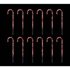 - 12 pre-lit candy canes with 72 red bulbs illuminate 36 ft. pathways