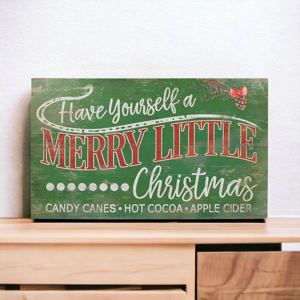 This rustic and heartwarming decoration brings the magic of the holiday season right into your home. Transform your home into a haven of holiday magic. Order our Merry Little Christmas Wooden Plaque now and let the enchantment of the season come to life. 18 in. x 30 in. Wooden plaque.