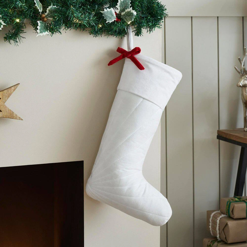 - Solid White Velvet Design: Features a solid white velvet stocking, offering a clean and elegant look perfect for your Christmas decor.
