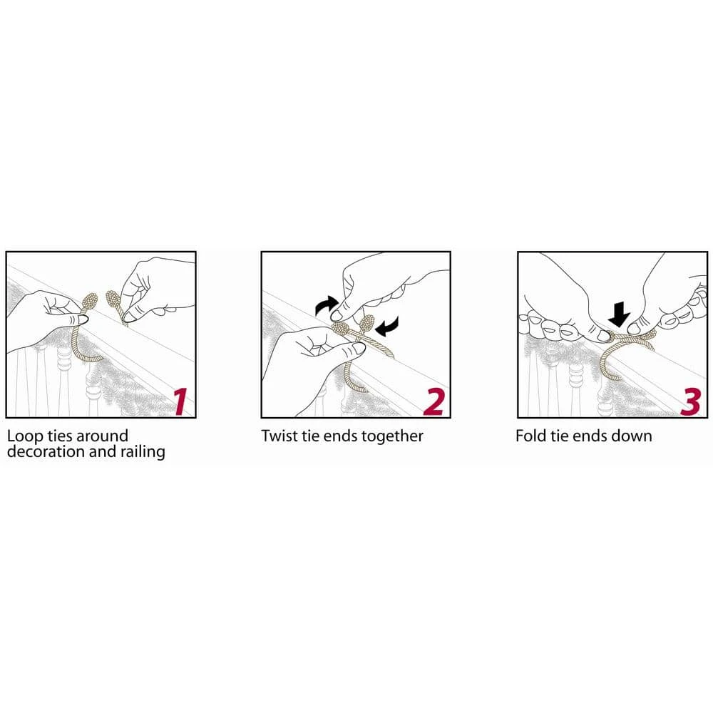 - Wrap around garland or other holiday decor to secure to the banister or railings