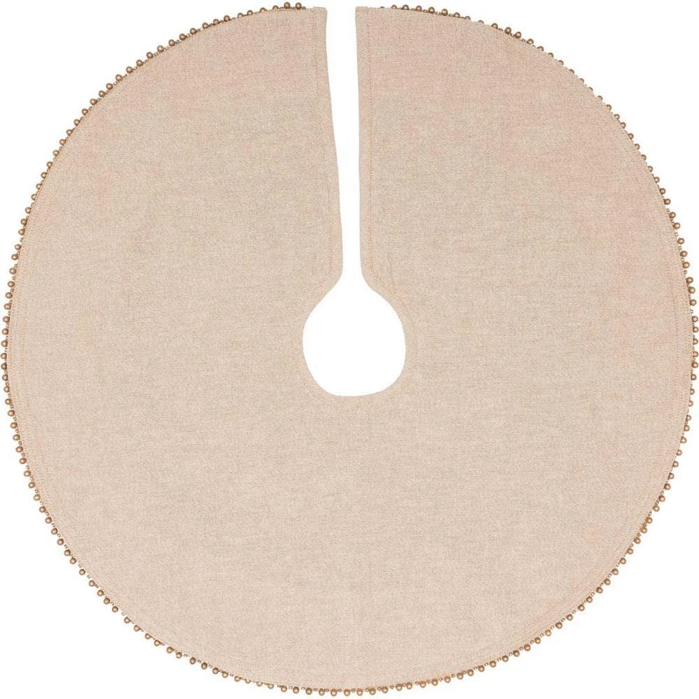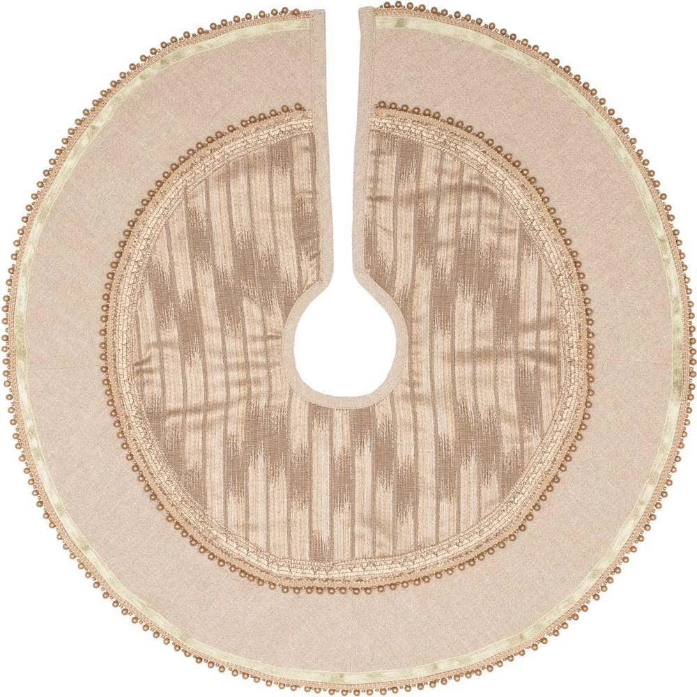 The Celebrate Mini Tree Skirt brings out the warmth of Christmas with its khaki and golden adornment. Featuring a central jacquard layer dressed with metallic golden lace and ball trim. Reverses to khaki gold lurex chambray fabric.