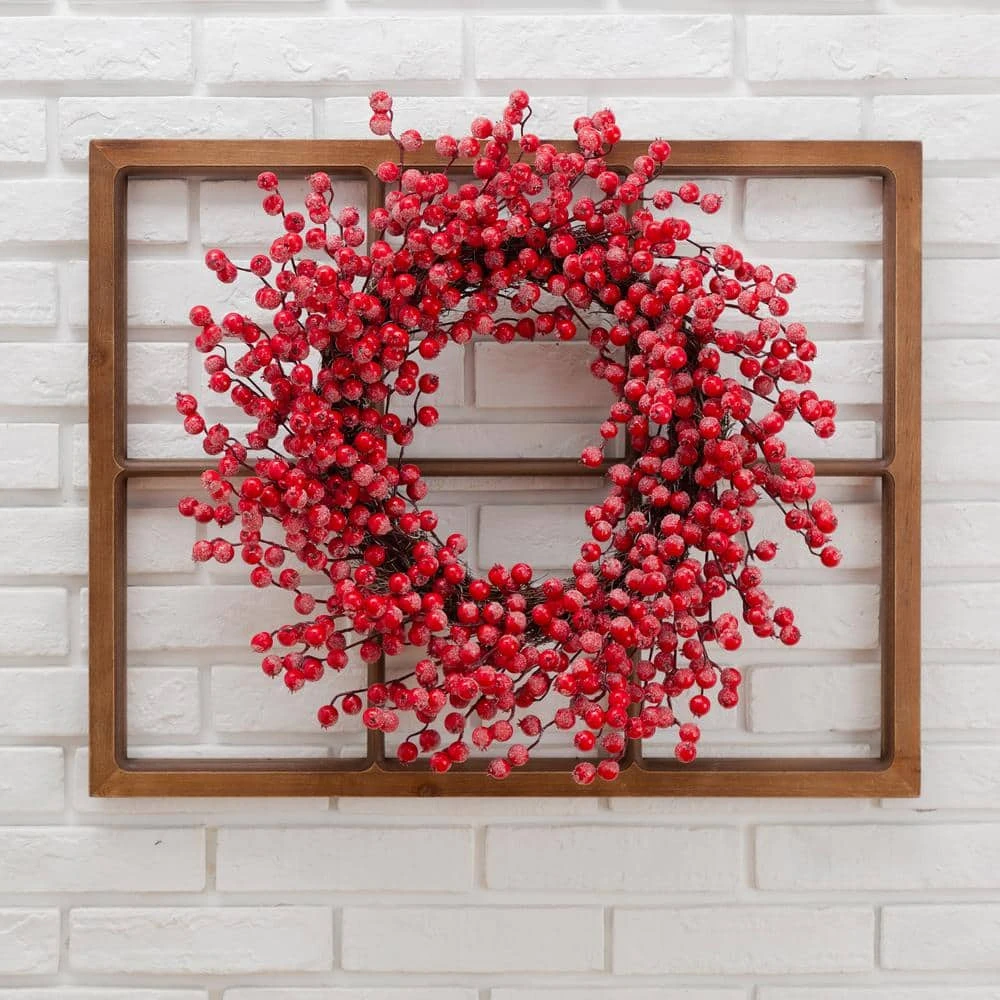 Adorn your home with lots of holiday style. Christmas Mix Window Wreath features, on a natural twig base, a lot of red berries, which transform your bland front door into a vibrant, attractive entryway that welcomes your closest family and friends into our home all winter long. Affixed to the back is a square, wood window that gives this piece a holiday-inspired feel. It’s perfect for decorating your front door or for use as an entryway feature to greet you guests this holiday.