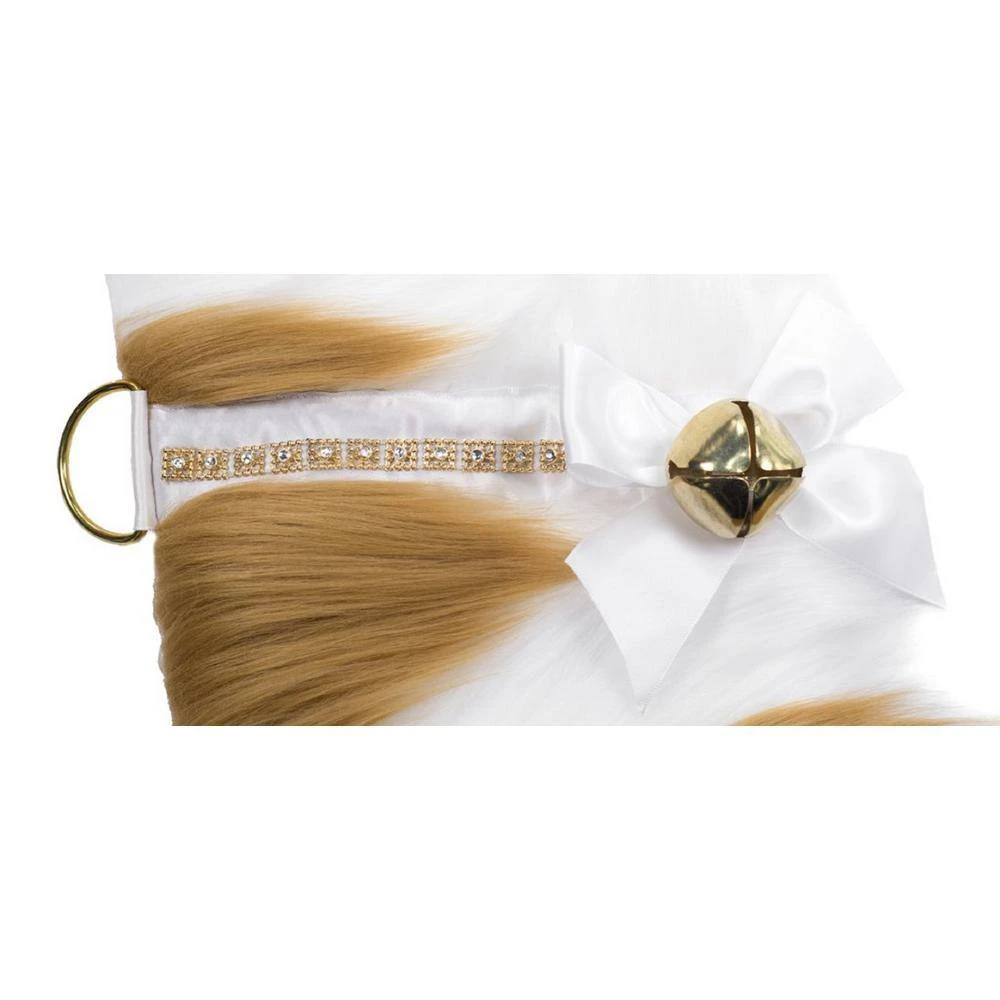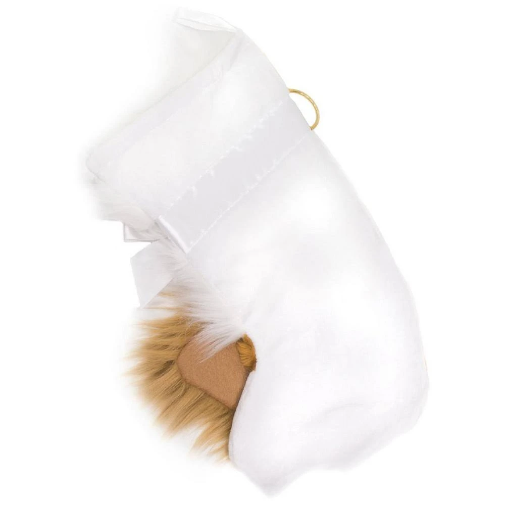 - Furry Christmas stocking features a cute holiday-style collar with bell embellishment