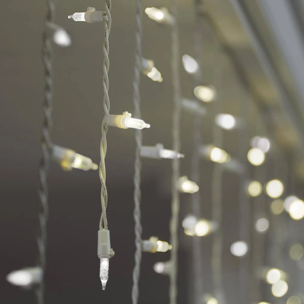 Create a festive setting with this LuxeSparkle LED icicle light string. The champagne and white lights deliver a bright shine, while the ample length holds 70 mini bulbs that fill your space with cheerful lighting. Energy-efficient LEDs brighten up your holiday home all through your seasonal celebrations, and the indoor or outdoor use lets you light up your favorite spots. This LuxeSparkle LED icicle light string works with up to 18 sets to extend your lighting coverage.