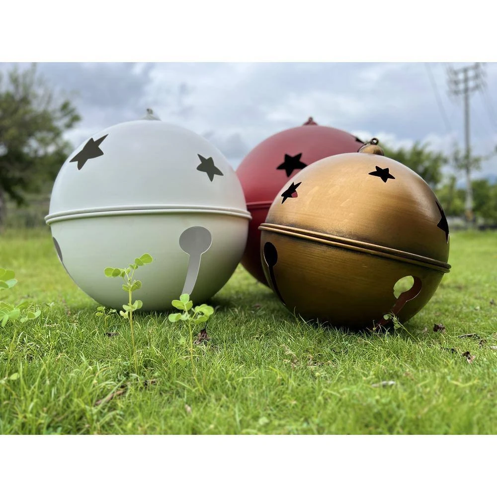 - Holiday jingle bell measures: red color 23.62 in. x 23.62 in., white color 19.68 in. x 19.68 in. gold color 15.74 in. x 15.74 in. total weighs 28.66 lbs.