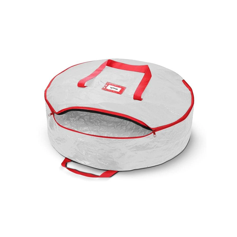 - Easy access, 2-way zipper opens bag completely for easy insertion and removal, no assembly required, 2 stitch-reinforced handles make the wreath holder easy to carry and hangable