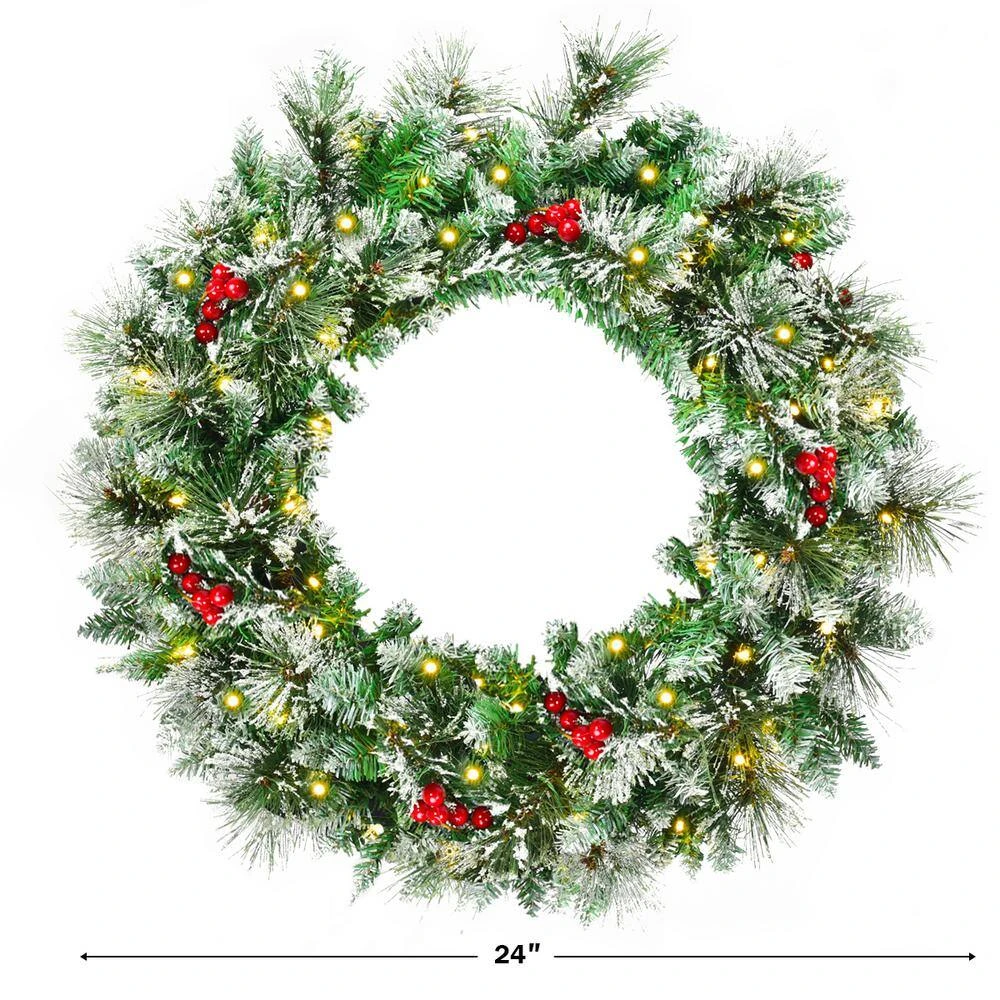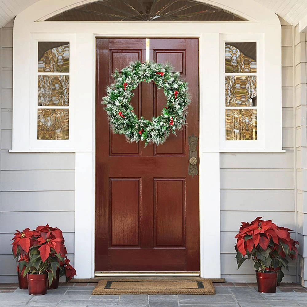 Our Christmas wreath can decorating your home to add the warm and joyful festival atmosphere for you. Containing 50 LED lights, the Christmas wreath serves to provide a colorful and shiny space for you, which also brings the warmth to the winter. When the night falls, you can turn on the light, and then it will be the most eye-catching decoration. With the timer, it’s convenient to control the light too. The Christmas wreath comes with several ornaments such as silver bristles and red berries. Without extra decorations, it offers different Christmas elements and makes the festival more cheerful. The Christmas wreath has 30 pine needles, which provides a lush and full look and makes it lifelike in appearance. Using the new PVC material, the needles will not deform easily and keep the natural appearance for you. So whether it’s hung on the wall indoors or door outdoors, surely it will deliver the vitality and warmth to you.