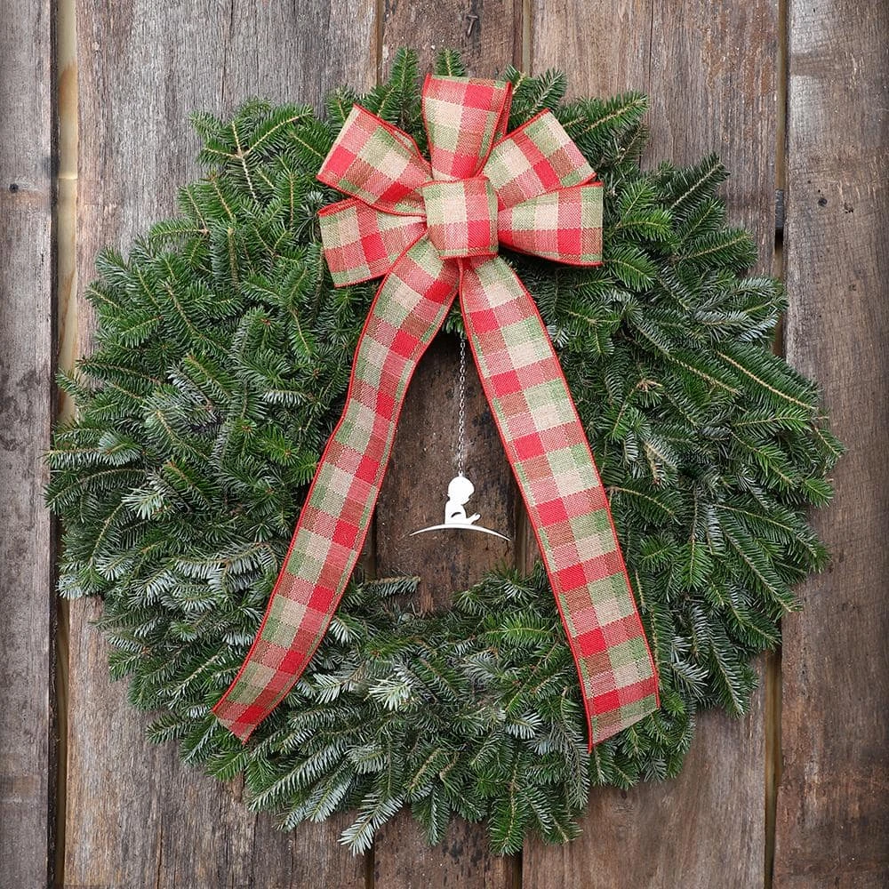 Using only the finest NC Blue Ridge Mountain Fraser Fir boughs, this lush, full bodied wreath is sure to have all the neighbors commenting. Our Country Angel wreath features a large plaid bow and Nickel plated St. Jude Hospital pendant with 15 in. chain ($20 Value).