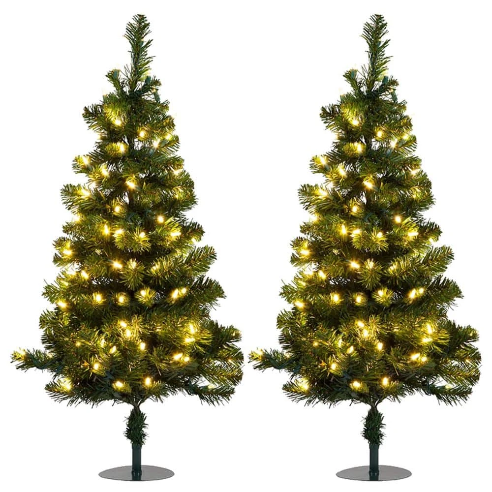 - Includes 2 ft. to 3 ft. tall Christmas pathway trees with 70 LED lights, rated for 20,000-hours