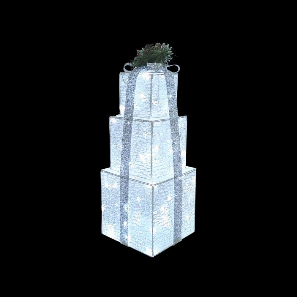 Add a touch of holiday magic to your outdoor space with our Foldable White Lighted Gift Boxes. Brighten up your celebrations and make your home the highlight of the season. Transform your outdoor holiday decor with our stunning Foldable White Lighted Gift Boxes. Perfect for adding a touch of festive elegance to your yard, these boxes are designed to shine bright and bring joy to your holiday season.