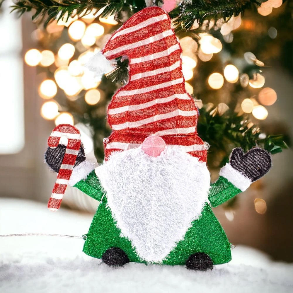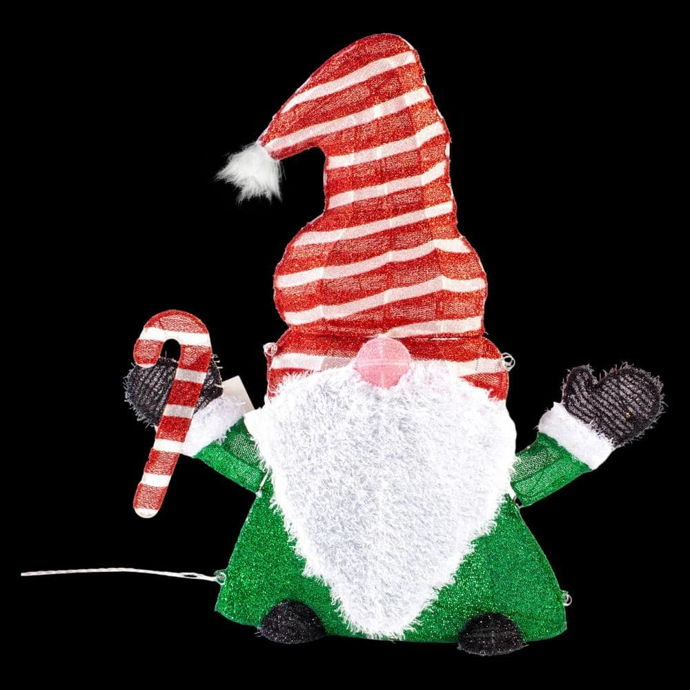 Set the tone to your holiday decor. This great eye-catching addition to your holiday scene is an adorable festive Lighted Christmas Gnome who stands 32 in. tall. Great for outdoor entry, porch or yard decoration. No outdoor area. Don’t worry he would create cheer and match any indoor decor.