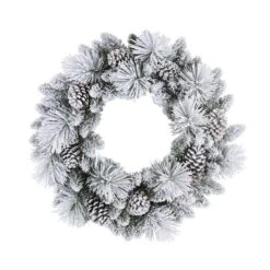Embrace the joy of the holiday season with the Puleo International Flocked Berkshire Spruce Artificial Wreath. This 32 in. holiday wreath will add a joyful and elegant touch to the inside or outside of your home on the front door, a window, or a fence while welcoming in the Christmas spirit. This stunning wreath has a full appearance with a total of 84 PVC branch tips and gorgeous life-like branches with snow-dusted green needles. The durable metal ring base offers easy and convenient hanging on any indoor or outdoor location of your choice with a natural look.