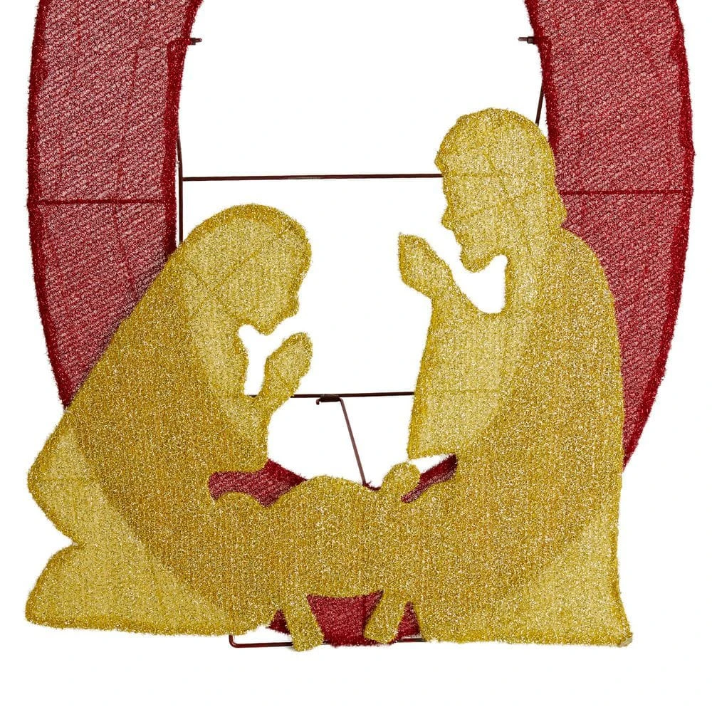 The Set of 4 Lighted Christmas Fabric Nativity Outdoor Decor is a heartwarming and festive decoration that features large, illuminated letters spelling out HOPE in a vibrant red fabric, with the O uniquely designed to incorporate a glowing nativity scene with Mary, Joseph, and baby Jesus, creating a beautiful and spiritual focal point for any holiday display. Set of 4 illuminated fabric letters with integrated nativity scene design. Crafted with premium material.