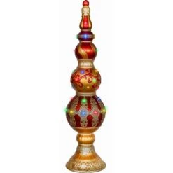 Capture the beauty, magic, and wonder of the holiday season with oversized Christmas decorations from Fraser Hill Farm. This metallic finish finial stands 4-ft. tall and is ready to greet your guests near the tree, door, or entryway. The indoor/outdoor figure is constructed out of durable resin that is weather resistant so it can be placed outside and withstand the elements to last for many seasons to come. No matter where you place it, the decoration will help you create a delightful holiday display everyone will love. Various intricate burgundy and gold designs wrap around each layer of the finial and are accented jeweled lights. Multicolor LEDs are built in throughout the figure for a sparkling display while festive music emits from it. There is also a timer so you can set the lights and music to turn on and off whenever you like. Each high-quality statue features a sturdy base to keep it upright and is brightly painted with fine details. Convenient plug in operation allows you to place the decoration in a variety of different areas around your home. For irresistibly unique decor that celebrates the spirit of Christmas, count on quality products from Fraser Hill Farm.