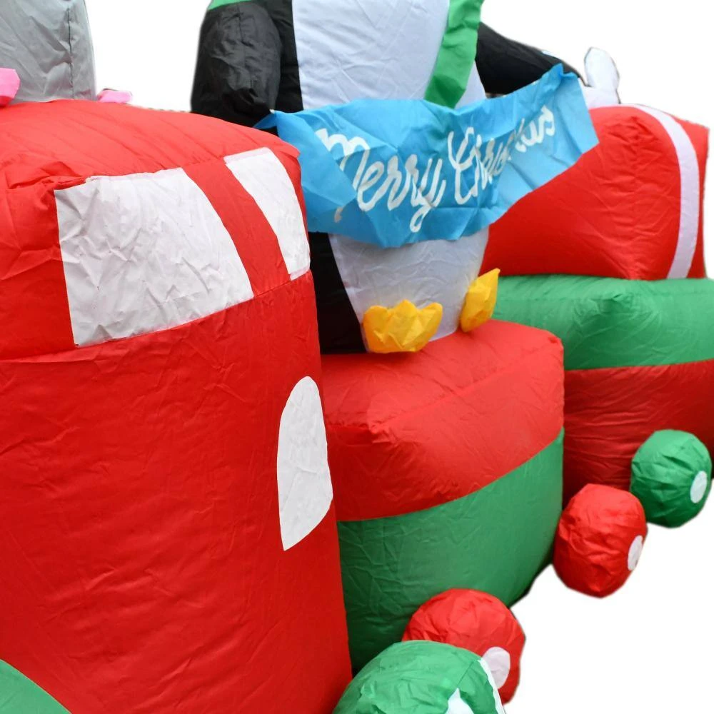 - Inflatable train features a mouse and penguin, both sporting festive Santa hats and headed straight to the north pole to gift and greet santa