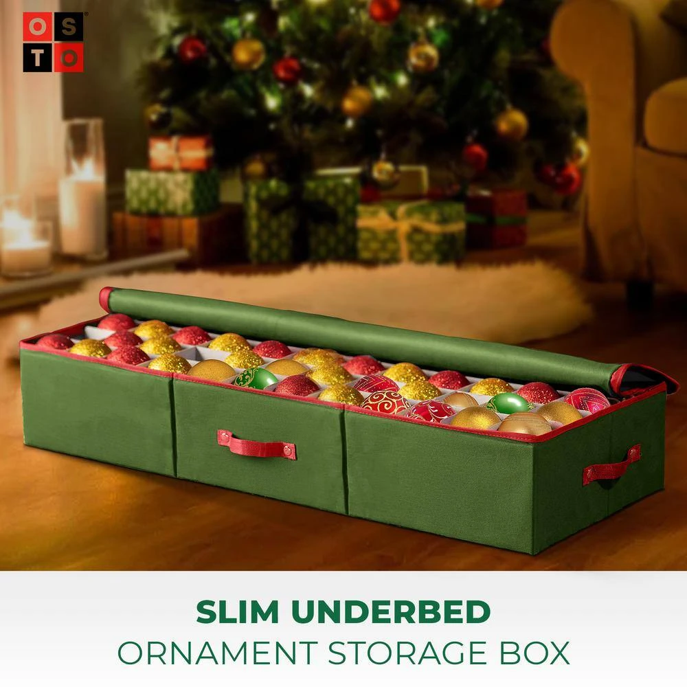 - Slim and compact-Ideally-sized to fit all your ornaments in 1 place and in the same time, a space saver for all types of storage areas especially flat design to fits under bed storage, collapses flat when not in use for compact storage and space saver
