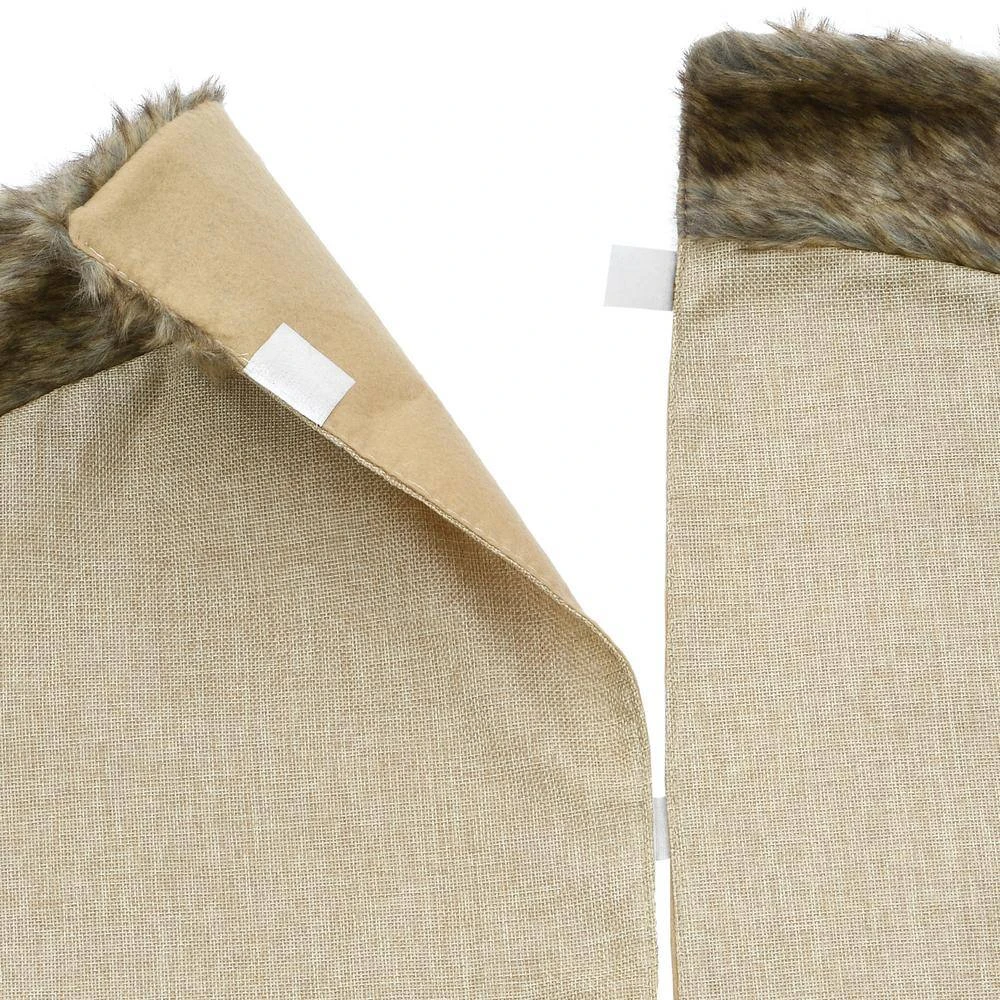 Add a relaxed and cozy finishing touch to your Christmas centerpiece with this warmly styled tree skirt. Made of 100% polyester, this skirt has a rustic beige center with a complimenting plush faux fur border. It is decorated with a winter scene featuring tall snow-dusted pine trees and a smiling snowman in the foreground. The split seam design allows for easy placement with Velcro tabs included to close and secure the seam.