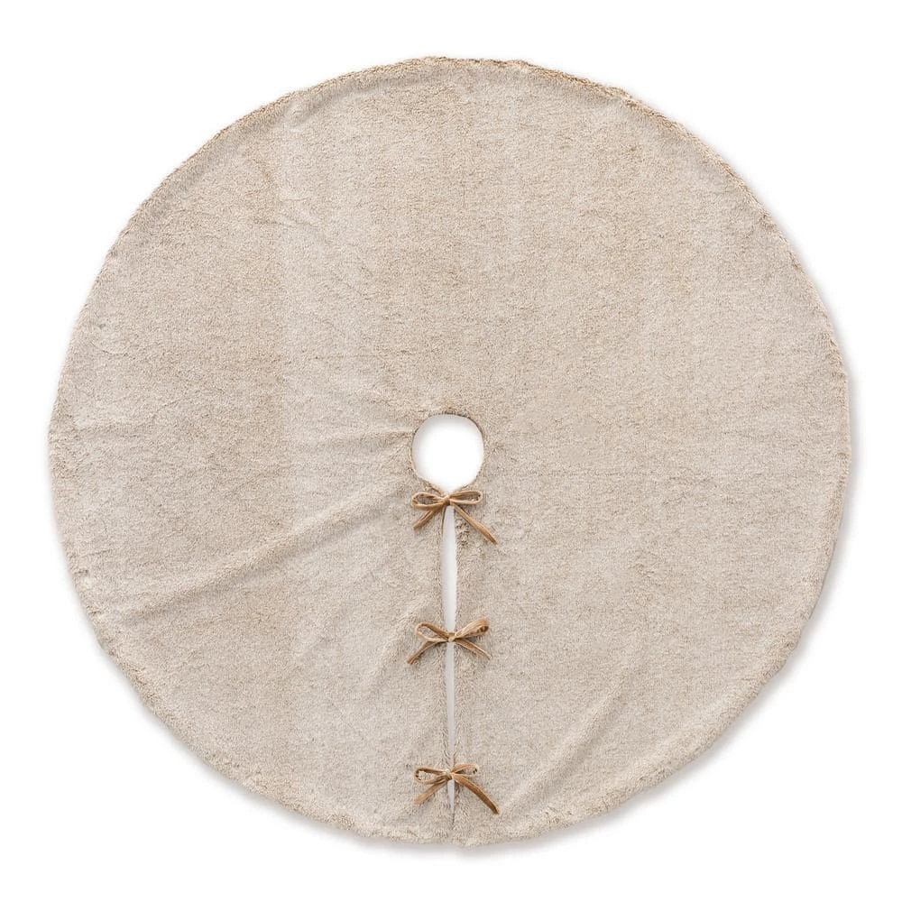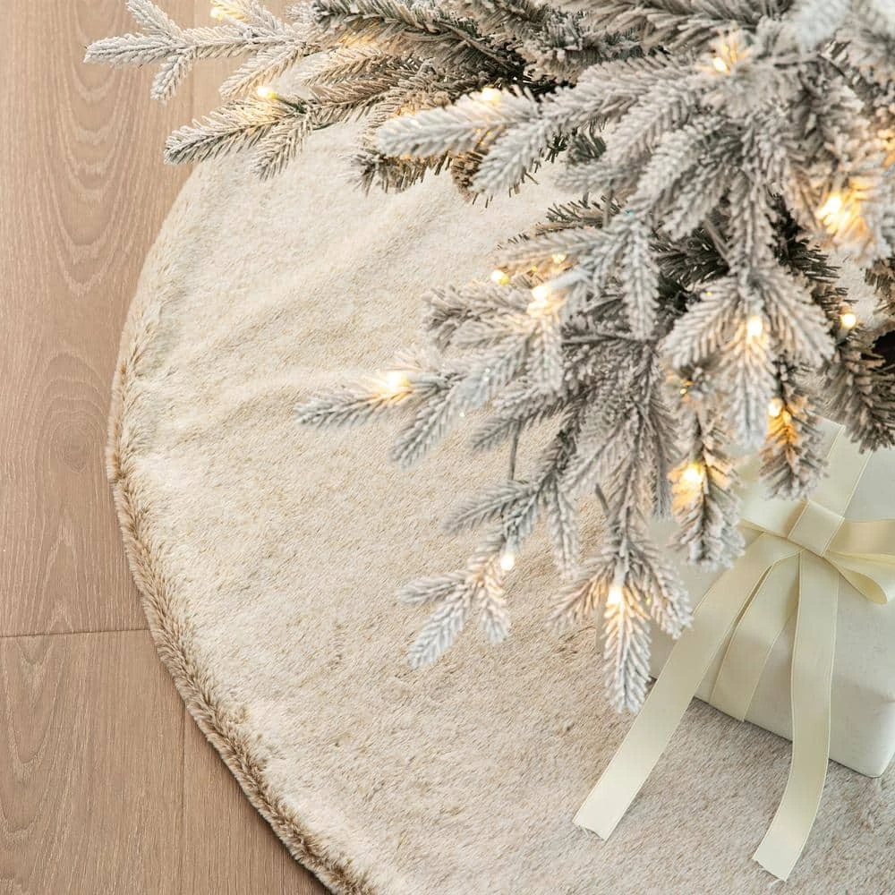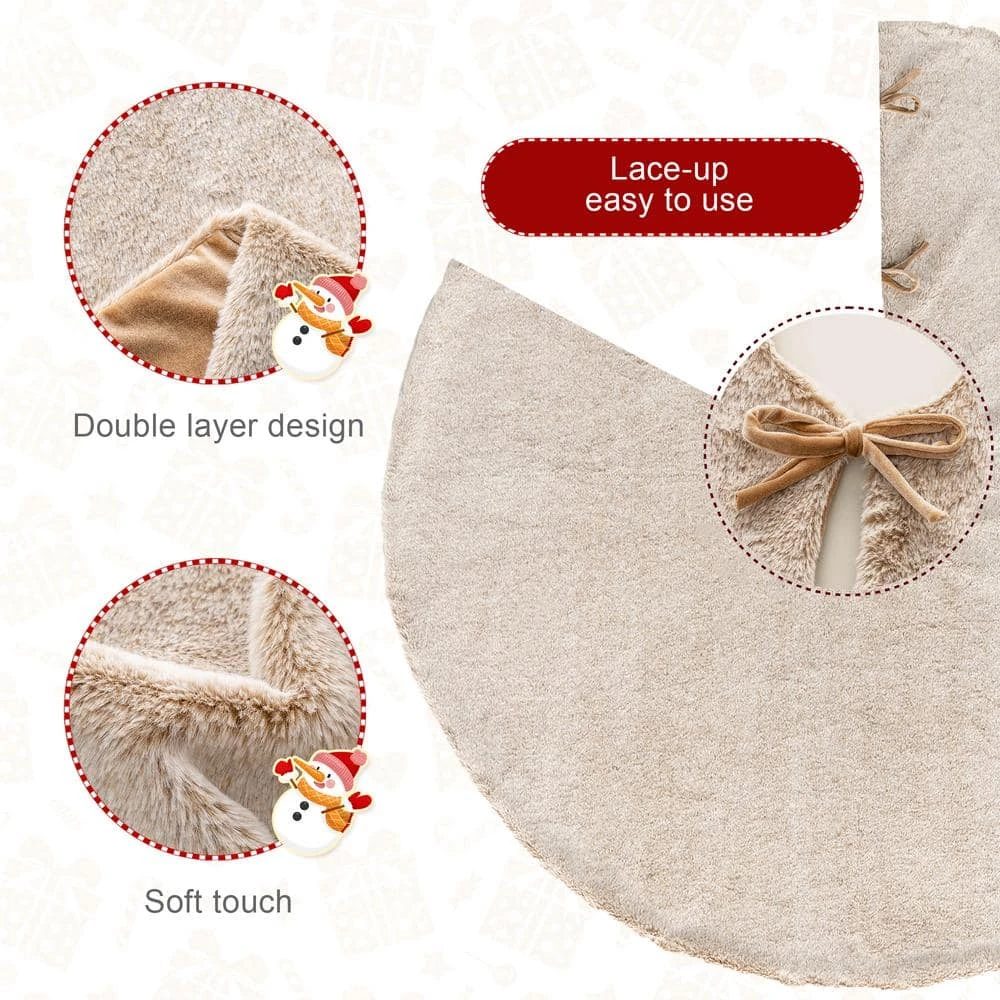 This Christmas tree skirt is designed to be placed around the bottom of your Christmas tree as a stylish protector against tree debris and as a mat for presents. The gorgeous and elegant faux fur makes it more soft and warmth. There are 3 tapes to lace-up for easy use. It adds to the festive atmosphere. And will add atmosphere to the Christmas tree decoration.