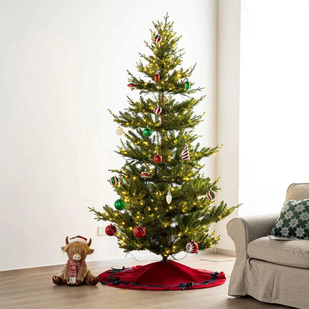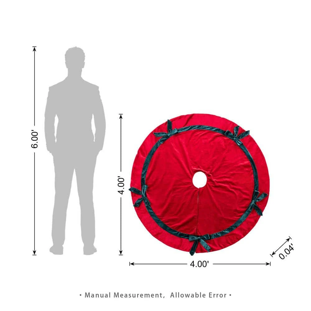 This charming Christmas Tree Skirt with Bows features luxurious velvet fabric in a rich red hue, adding elegance to your holiday decor. Adorned with classic satin bows, it enhances your Christmas tree presentation with timeless sophistication. Designed to elevate your festive setup, it combines beauty and functionality for a polished seasonal display.