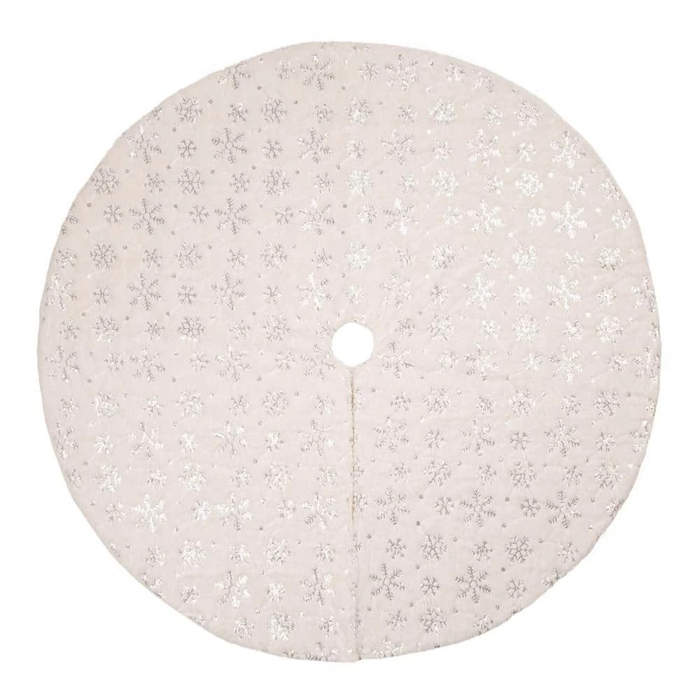 Treat your tree right with the final touch in a soft faux fur tree skirt. Adds the perfect layer for piling the presents on and protect floors. The crisp white faux fur creates the look of freshly fallen snow to give a lovely festive style. Warm fuzzy velvet provides an eye-catching base for the applique and embroidered designs.
