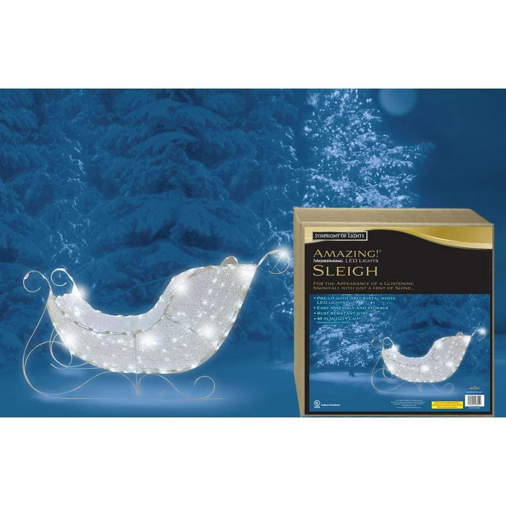 This 48 in. Morphing LED Sleigh with 200-light Pure White LED. It has 60 in. Lead Wire with UL Listed Transformer, can be used indoor/outdoor. Brite Star Has Been Bringing the Newest Lighting and Decor to Your Home Since 1932. Our Family-Run Company Prides Itself on Excellent Customer Service and High-Quality Products.