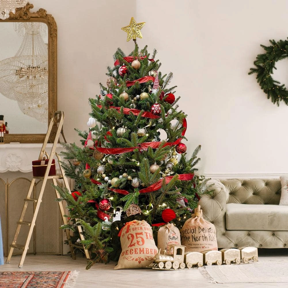 Nothing brings back old holiday memories or plays such a large role in creating new ones as a Fresh Real Christmas Tree. The slender spread and pine-scented aroma instantly mesmerizes young and old alike, and evokes the holiday spirit. Fraser firs are famous for their 2 tone needles. Each needle has a dark green top with a silver underside. With a stiff branch, soft needles, and pleasant aroma Fraser Firs are a treat to decorate. The best thing about Fraser Firs is that their needle retention is excellent. This 5 ft. to 6 ft., low maintenance tree is the perfect choice for table top decor, framing your door entrance, kid’s room, or addition to other Christmas decorations. They are fresh cut from North Carolina.