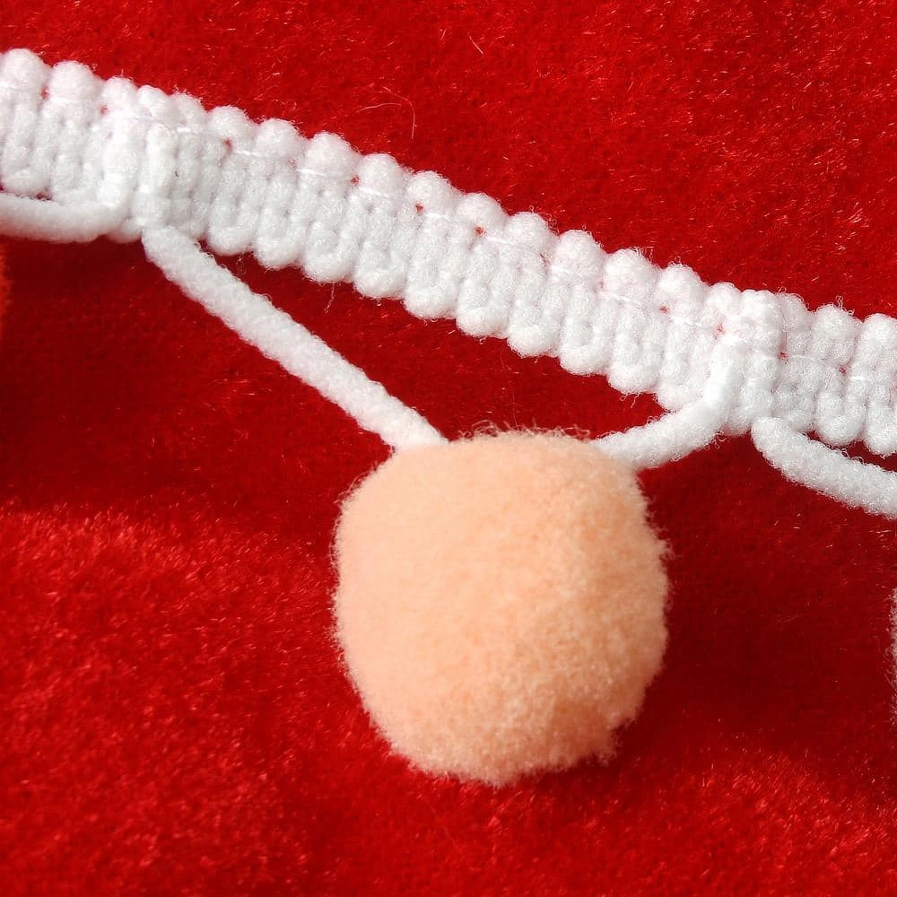 Add the finishing touch by surrounding the base of your Christmas centerpiece with this fun and fancy tree skirt. Made of 100% polyester, this skirt is a vibrant red velvet with a border and 2 inner rows of white piping featuring multi-color pom poms. The split seam design allows for easy placement with Velcro tabs included to close and secure the seam.