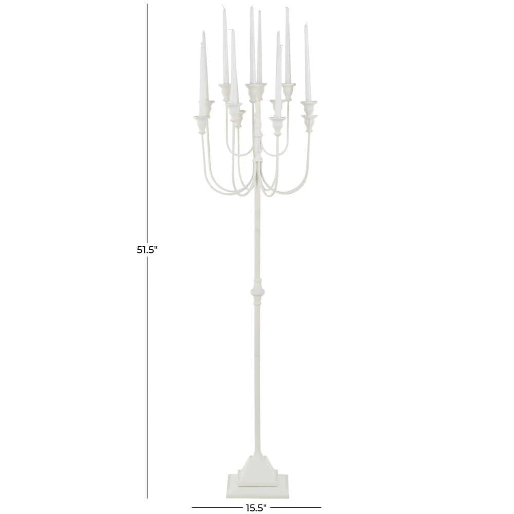 - White metal candelabra measures 15.5 L x 15.5 W x 51.5 H in. and weighs 10.5 lbs.