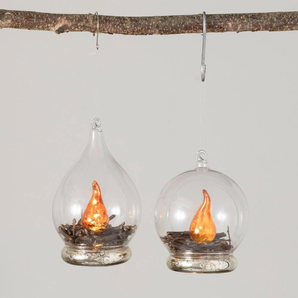 - Featuring built-in LED lights, this glass ball ornament illuminates with a warm and inviting glow, creating a cozy atmosphere reminiscent of a crackling campfire