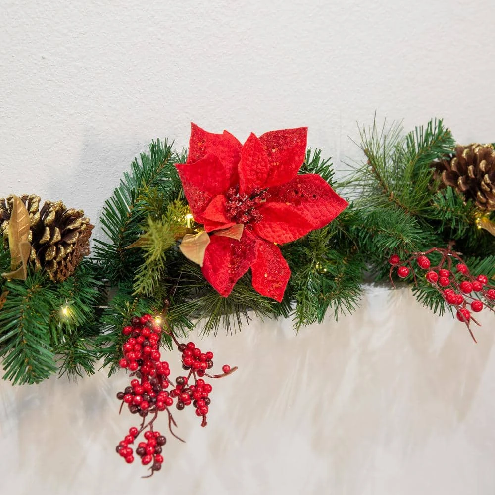 Transform your home for the winter holidays with Barton Pre-Lit Artificial Christmas Garland. Barton garland is 6 ft. L and decorated with pine cones and berry clusters. These beautifully ornate decorations complement the garland’s natural looking branches.