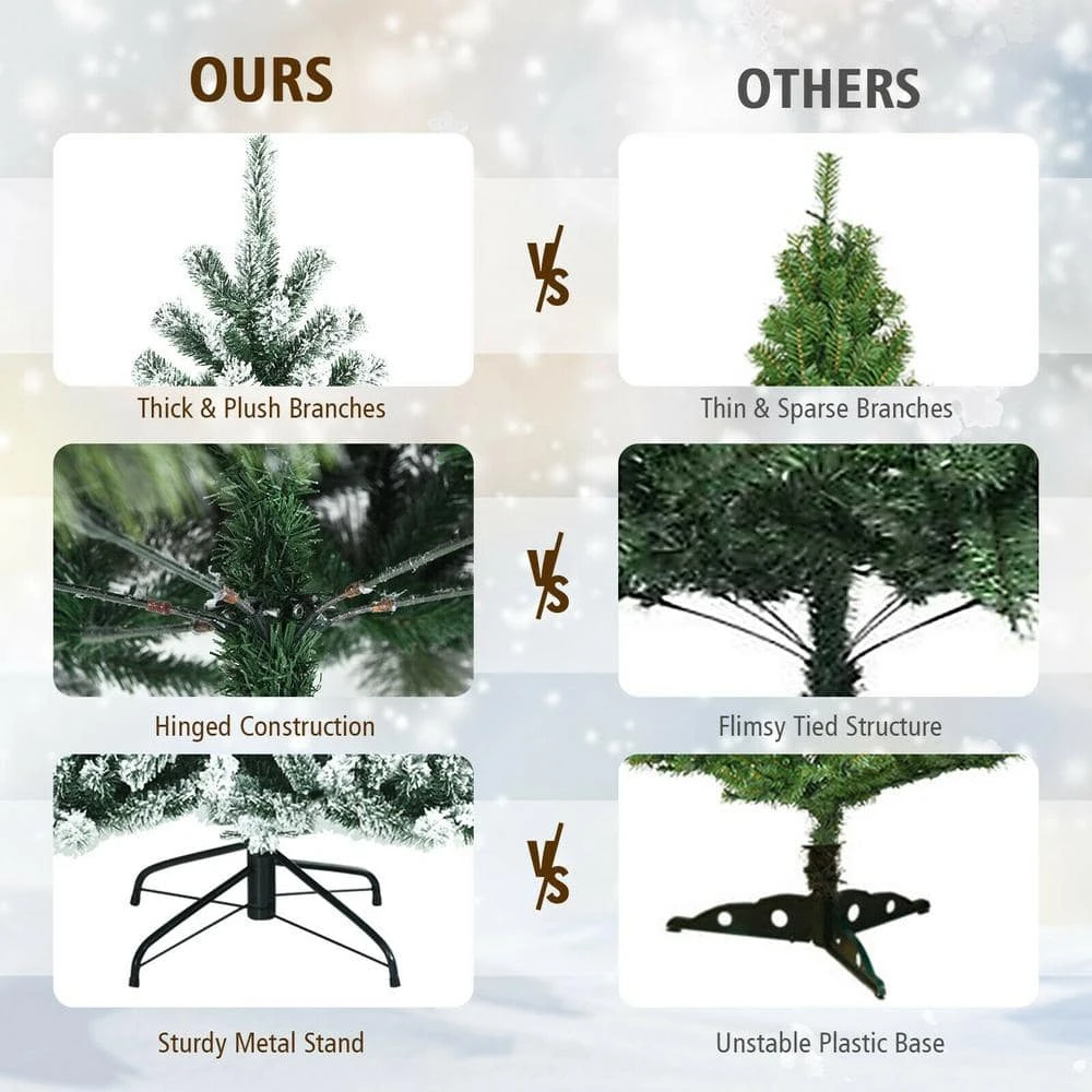 There are 928 snow-capped Christmas trees with numerous branches and leaves, which create a plump effect and add a warm atmosphere to the festival. Solid metal base can not only provide durable and stable support, but also can be folded without occupying too much space, bringing you more convenience and happiness. Our Christmas tree is hinged, which means that the branches are directly connected to the tree. This year, you can assemble the Christmas tree more easily than before. Under the warm white light, our Christmas tree will bring joy and happiness to you and your family.