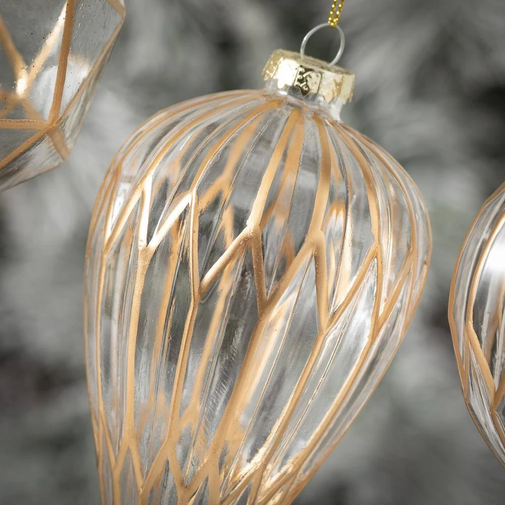 This elegantly beautiful glass ornament set will add a touch of class to your holiday decor this Christmas season. This set features a gold modern pattern over clear glass that truly makes these ornaments eye-catching. These SULLIVANS-exclusive ornaments will create long-lasting memories for years to come.