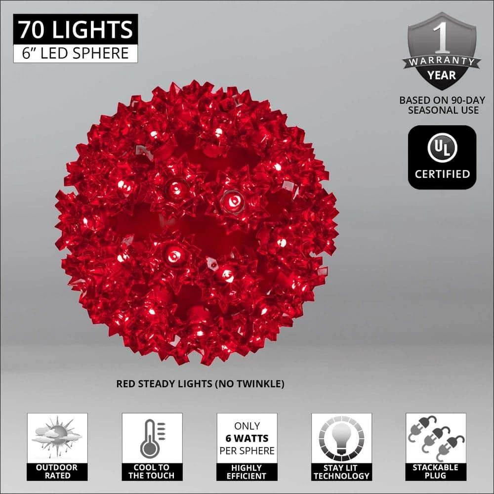 - 6 in. starlight sphere with 70 red LED mini lights