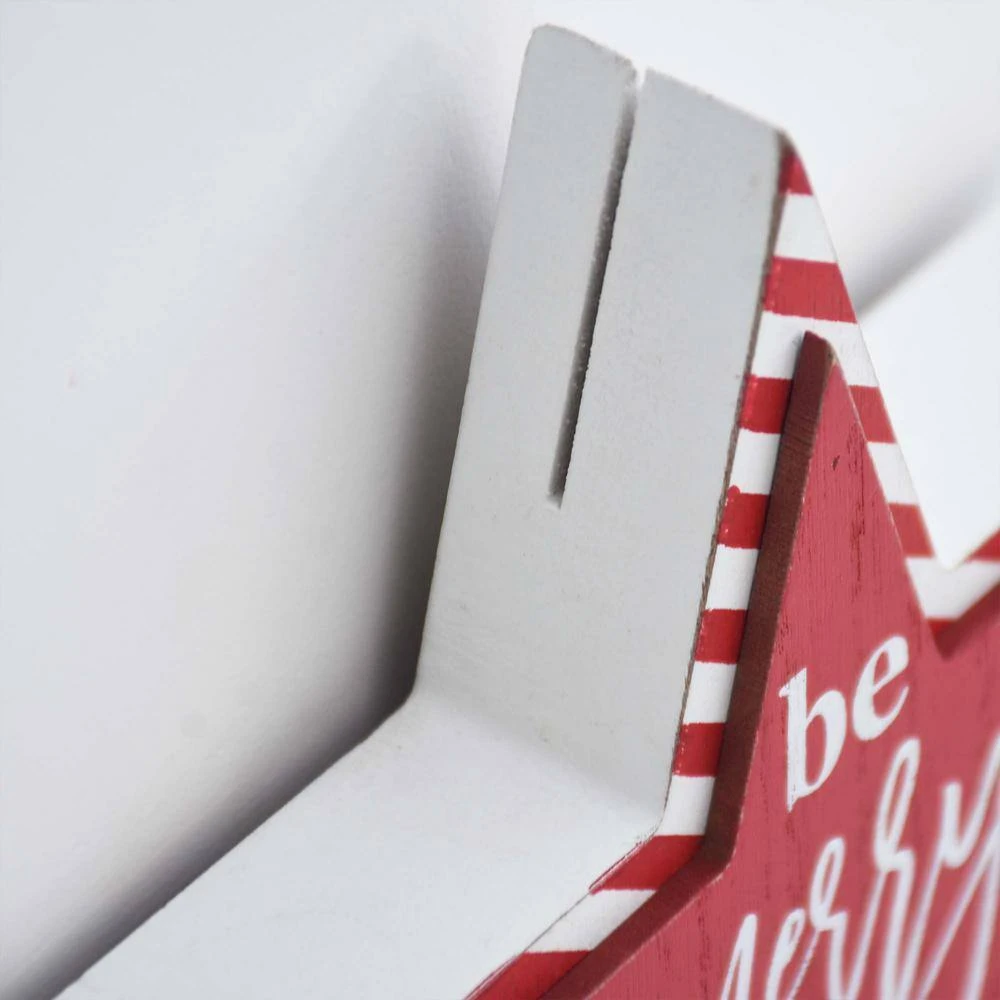 Add a fun and festive accent to your home with this Freestanding Be Merry Wood Photo or Note Holder. This small and cute Christmas star photo stand measures 6.375 in. W x 1.25 in. D x 6 in. H. Made of MDF and painted to perfection, the star shaped tabletop sign features red and white colors and has a cutout in the top to hold a photo. Candy cane striped border offers a playful touch. Display a special memory or family photo with this decorative photo stand. Add holiday cheer with this stylish design which can be placed in any room of your home. Accent a shelf, mantel, coffee or end table with this tabletop sign. This thoughtful and affordable holiday photo holder is a great gift for friends or family members that love to decorate their home for the holidays.