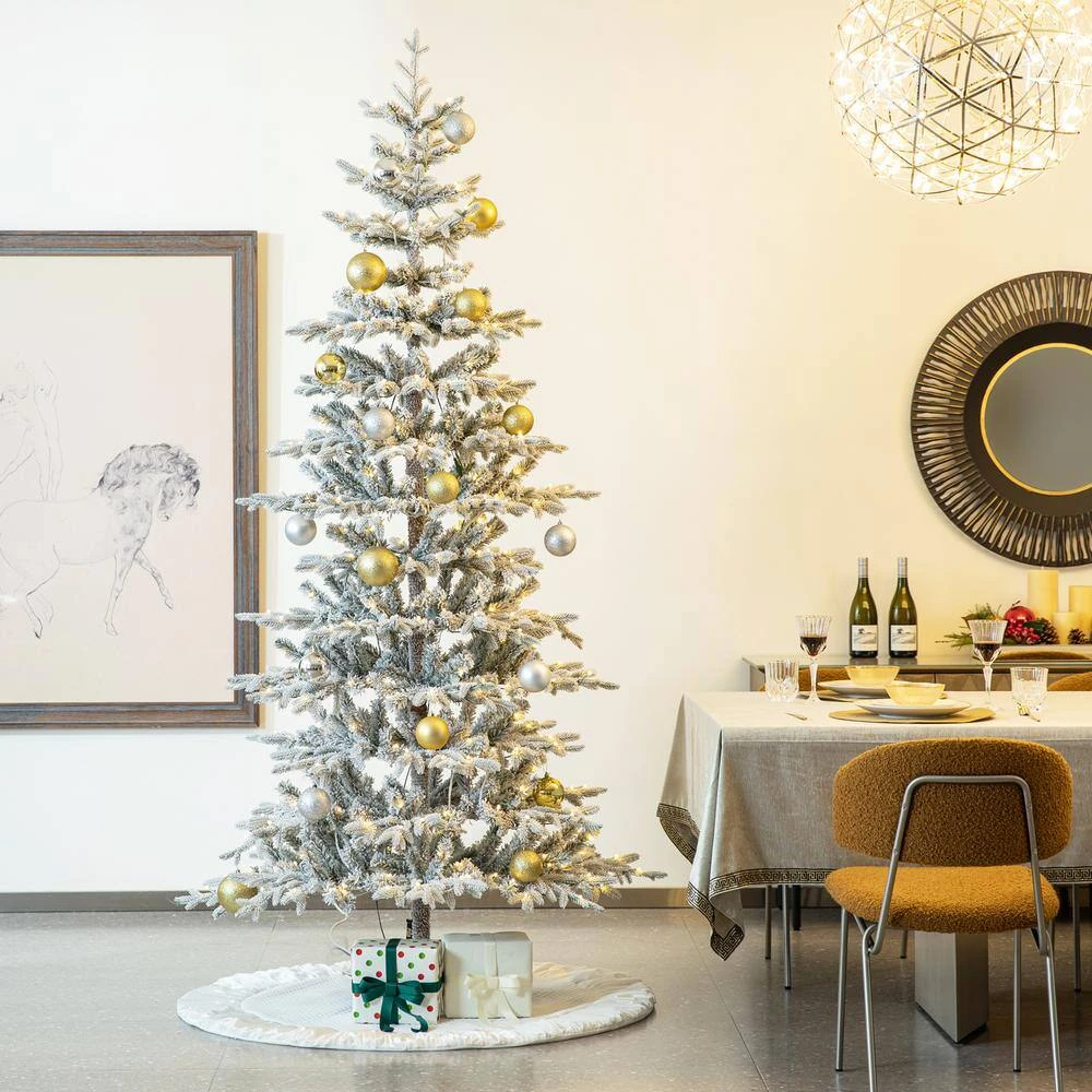 This deluxe Christmas tree skirt is designed to be placed around the bottom of your Christmas tree as a stylish protector against tree debris and as a mat for presents.Makes it easy to catch needles and protect fallen ornaments. Add this Christmas tree skirt to your decor to add a splash of beauty to your home.