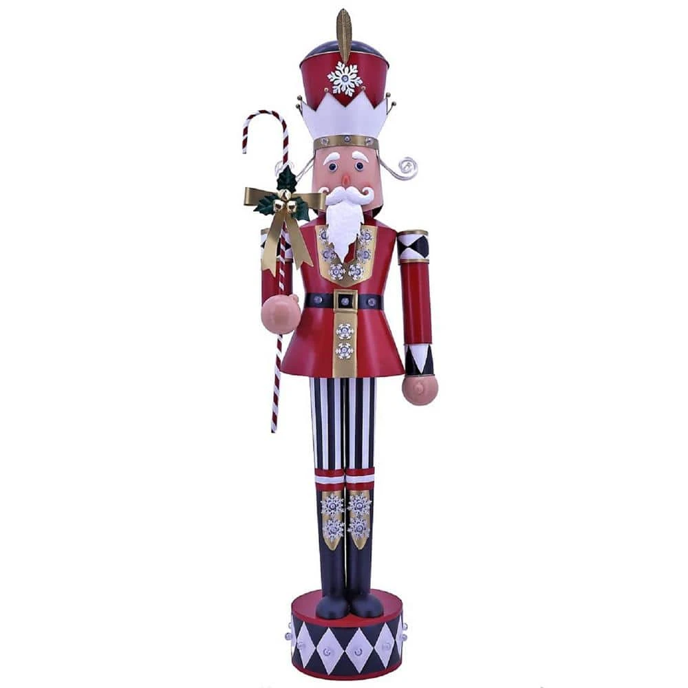Make an impact this Christmas with Harry our Large Iron Nutcracker with Candy Cane Staff. Harry is expertly crafted from powder coated iron for a sturdy and durable frame. He has been hand painted in a glossy finish with special attention to details like his snowflake summarys and white LED bulbs are spread throughout his body, adding an extra-flair.