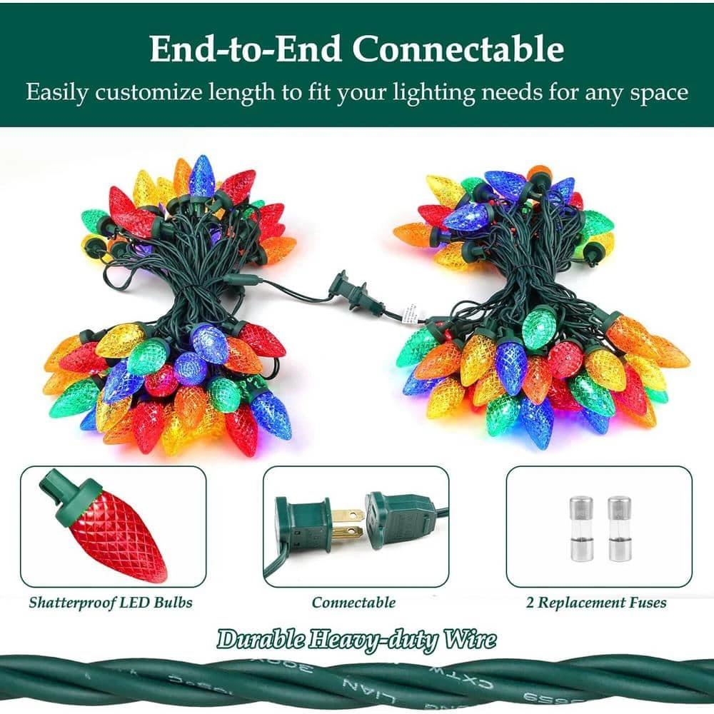 - Shatterproof C9 strawberry led bulbs: each strand of string lights is 67 ft. long and equipped with 100 bright C9 strawberry-shaped led bulbs. they are easy to use – just plug and unplug for on and off – and long enough to wrap around a christmas tree or anywhere else you’d like to add some light, such as your porch, garden, lawn, yard, or roof