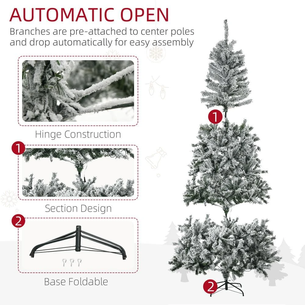 Make your holiday season magical with our pre-lit Christmas tree, perfect for creating a warm and festive atmosphere in your home. Decorated with snowy leaves and 500 warm white LED lights, this tree shines brightly and brings holiday cheer without the hassle of maintaining a fresh-cut tree. Crafted with flame-retardant materials, you can safely place it near your fireplace. With 1254 branch tips, this tree boasts a full, realistic appearance.