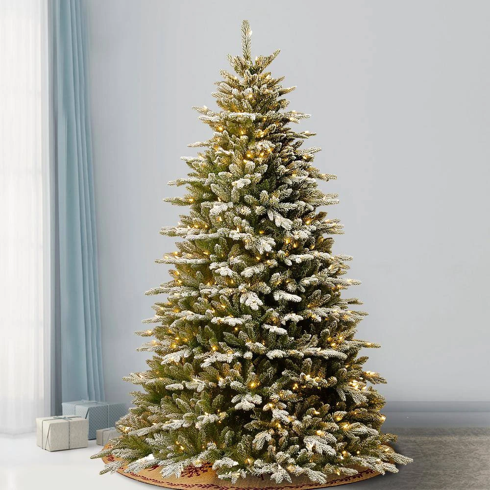 This Snowy Sierra Spruce tree features Feel Real branch tip technology, creating a tree with remarkable realism. These crush-resistant branch tips are molded from real tree branches for an authentic living tree appearance. Branches are lightly flocked to give the appearance of freshly fallen snow. This tree is pre-strung with 750 clear lights that remain lit even if a bulb burns out. Three section construction and hinged branches add to ease of assembly. Sturdy folding metal tree stand is included.