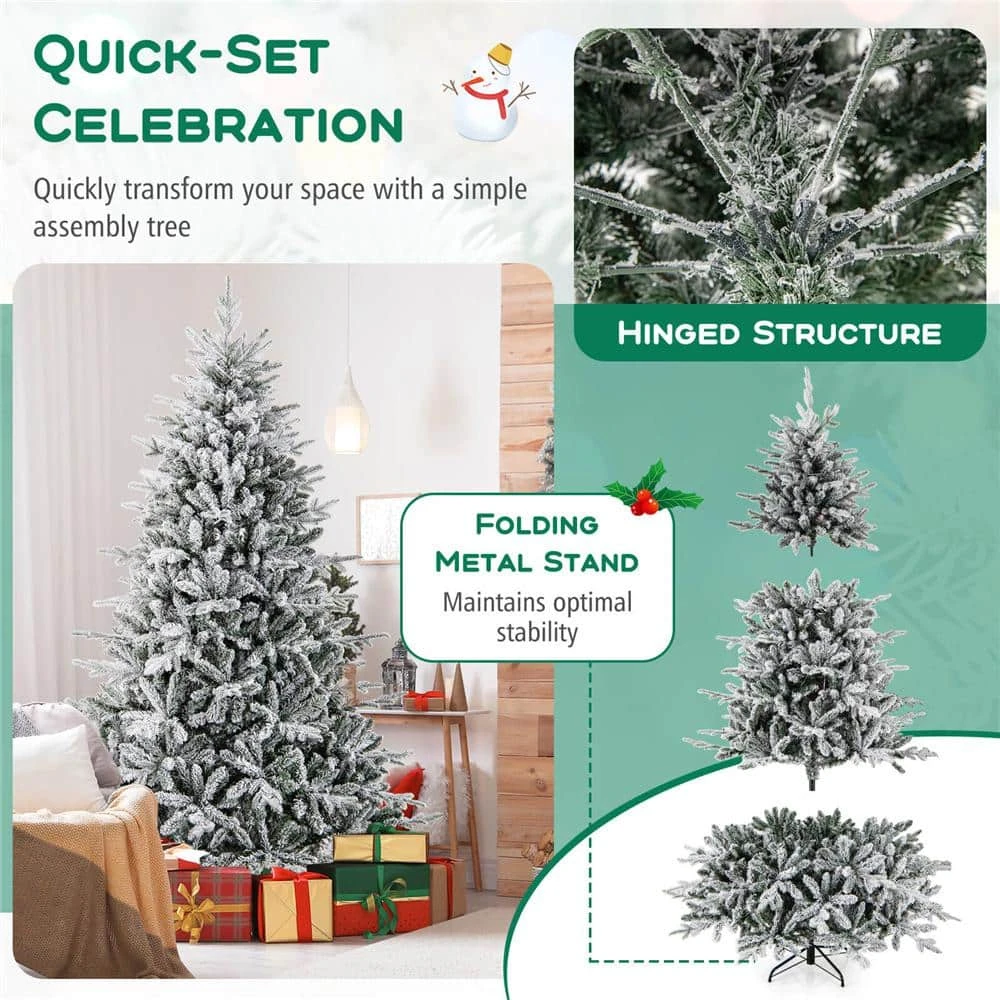 - Lush appearance: it’s 1164 branch tips are adorned with a beautifully flocked design that simulates a fresh snowfall, the Xmas tree not only enhances the cozy Winter wonderland feel but is also versatile enough for your office, shop, home and more