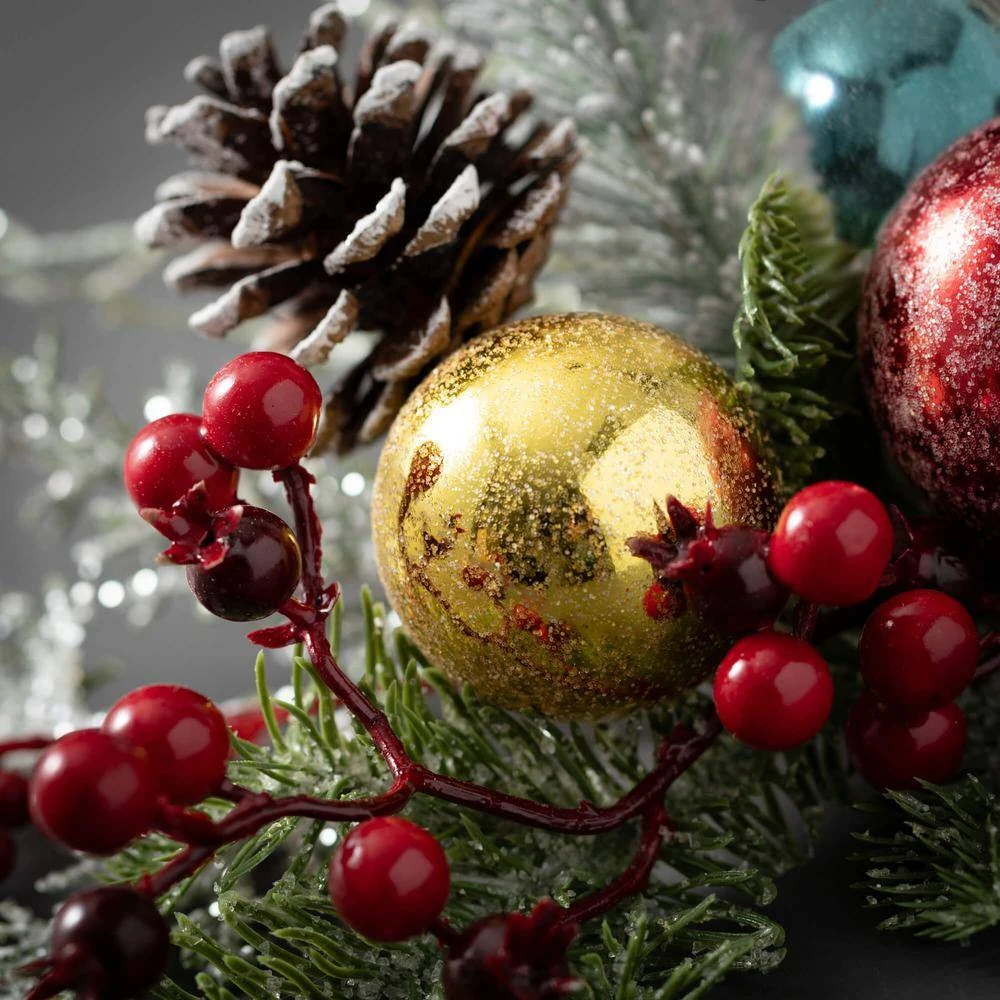- Lifelike Artificial Greenery: Enjoy the beauty of nature without the maintenance. This artificial greenery piece combines frosted pine and shiny baubles, creating a realistic look that enhances your holiday decor.