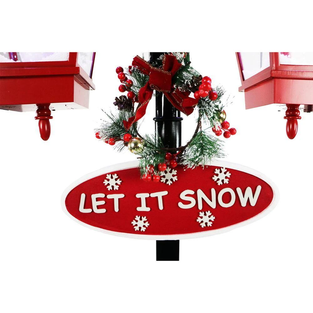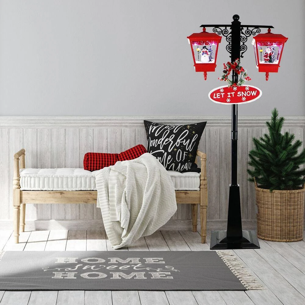 - DOUBLE LANTERN SNOWY STREET LAMP: 71-inch tall dual-lantern snowing musical street lamp with self-containing snow function – perfect size for anywhere inside your home. Includes Let it Snow sign, berry-covered wreath, and classic red bow.